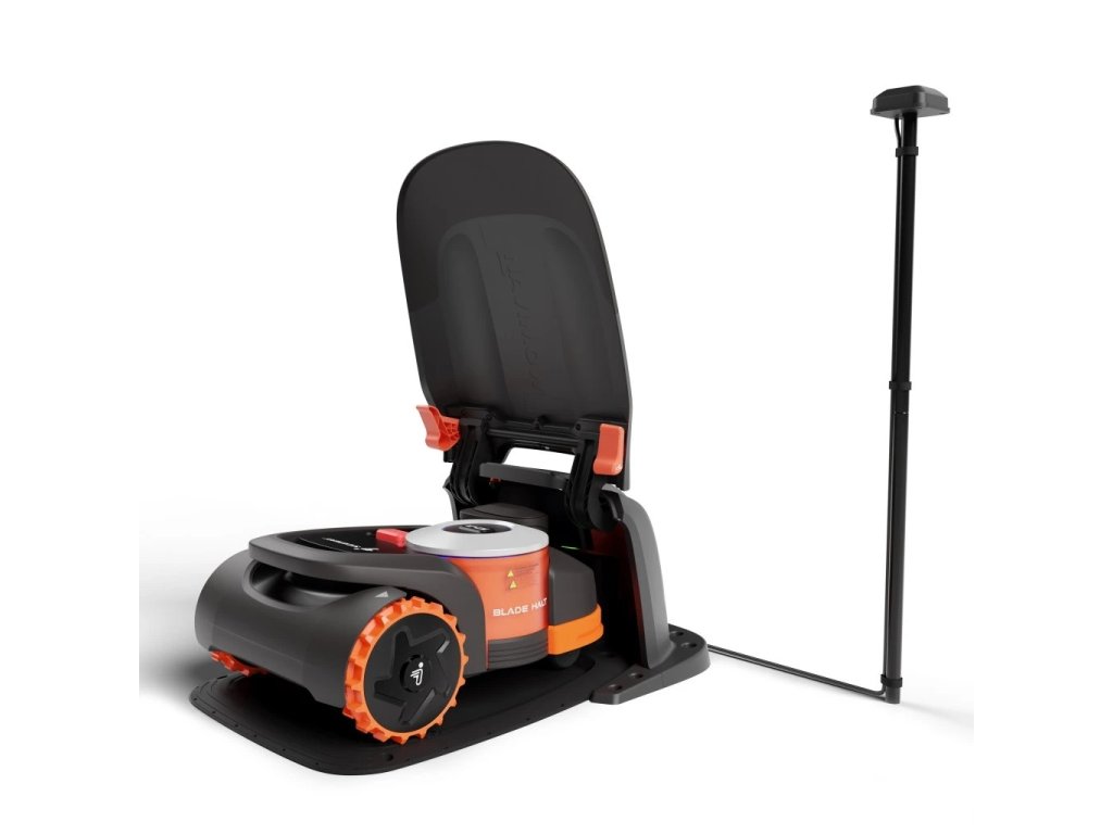 Garáž je vyrobena z vysoce kvalitních materiálů, které odolávají UV záření, dešti a sněhu. Její sklopná vrchní část umožňuje snadný přístup k klávesnici a displeji pro nastavení a kontrolu sekačky. Otvor v zadní části garáže umožňuje snadné připojení kabelů.