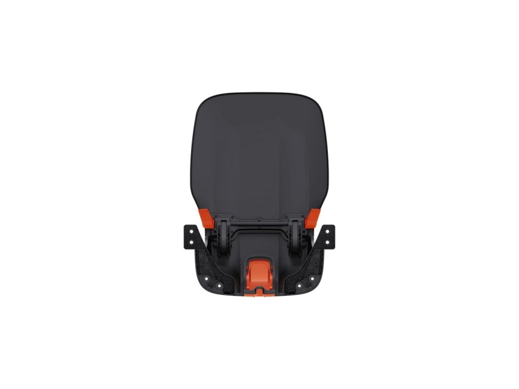 Garáž je vyrobena z vysoce kvalitních materiálů, které odolávají UV záření, dešti a sněhu. Její sklopná vrchní část umožňuje snadný přístup k klávesnici a displeji pro nastavení a kontrolu sekačky. Otvor v zadní části garáže umožňuje snadné připojení kabelů.